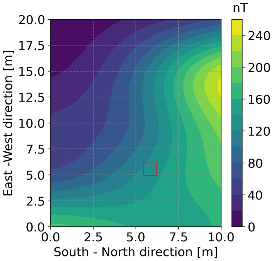 The magnetic gradient survey (Fig. 1) revealed localised regions of elevated gradients, with values exceeding 10 nT m−1 in the northwestern sector of the original Entoto site. While this surpasses the 1 nT m−1 threshold typically recommended for absolute geomagnetic observatories (Jankowski and Sucksdorff, 1996), that criterion is specifically intended for baseline quality installations contributing to the global magnetic reference network. In contrast, the Entoto deployment is not intended to operate as an INTERMAGNET-grade observatory, but rather as a variometer station focused on monitoring relative magnetic field variations for space weather research. In this context, moderate gradients, although not ideal, are acceptable, as variometer measurements are generally robust to static field anomalies.