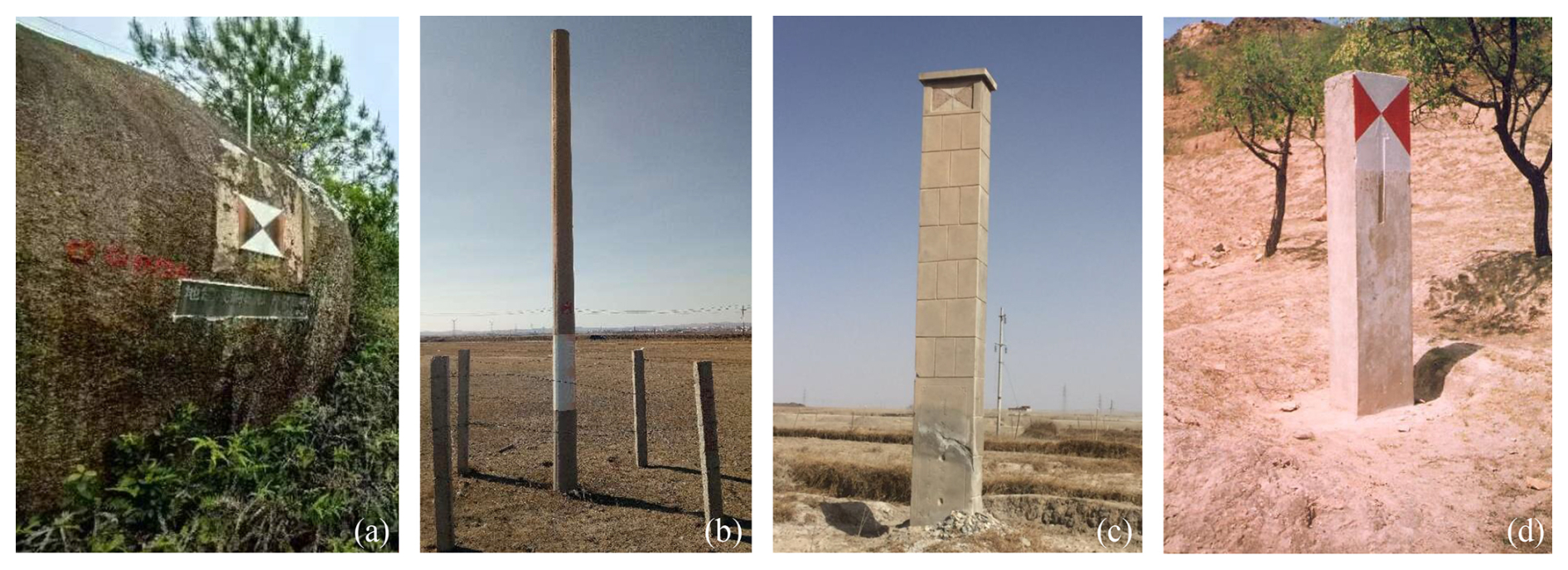 The Geomagnetic Network of China comprises 46 geomagnetic observatoties, most of which have been in operation for over 10 years, and their azimuth angles all require re-measurement. The mark's azimuths of the early-constructed observatories were measured using traditional astronomical methods, and usually obtained during the station construction period. At that time, the observation rooms were not yet roofed, and theodolites could be set up directly on observation pillars to achieve unobstructed visibility of Polaris. Today, however, the rooms have been fully roofed, making it impossible to see the sky from inside. Moreover, the fixed mark pillars outdoors vary in shape (as shown in Fig. 1), and are mostly unsuitable for mounting theodolites on them. Furthermore, traditional astronomical observation is highly dependent on weather conditions. Due to the diverse geographical locations of the observatories, especially those in coastal areas, where cloudy weather is frequent. It sometimes often takes several days of waiting for suitable weather to conduct astronomical method, making the measurement process time consuming and inconvenient for arranging remeasurement plans.