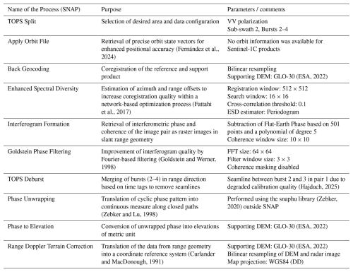 All input data were processed in the ESA Science Toolbox Exploitation Platform (SNAP) as described in Braun (2021) which included the steps summarized in Table 2.